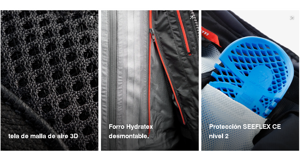 Los grandes bolsillos de almacenamiento en la parte delantera y trasera te permitirán llevar tus elementos esenciales durante el viaje. El Levante 2 H2O viene totalmente equipado con protecciones homologadas SEEFLEX CE nivel 2 en hombros y codos y está preparado para nuestros protectores de espalda y pecho SEESOFT. Varias pestañas de ajuste y correas asegurarán un ajuste perfecto a tu cuerpo.