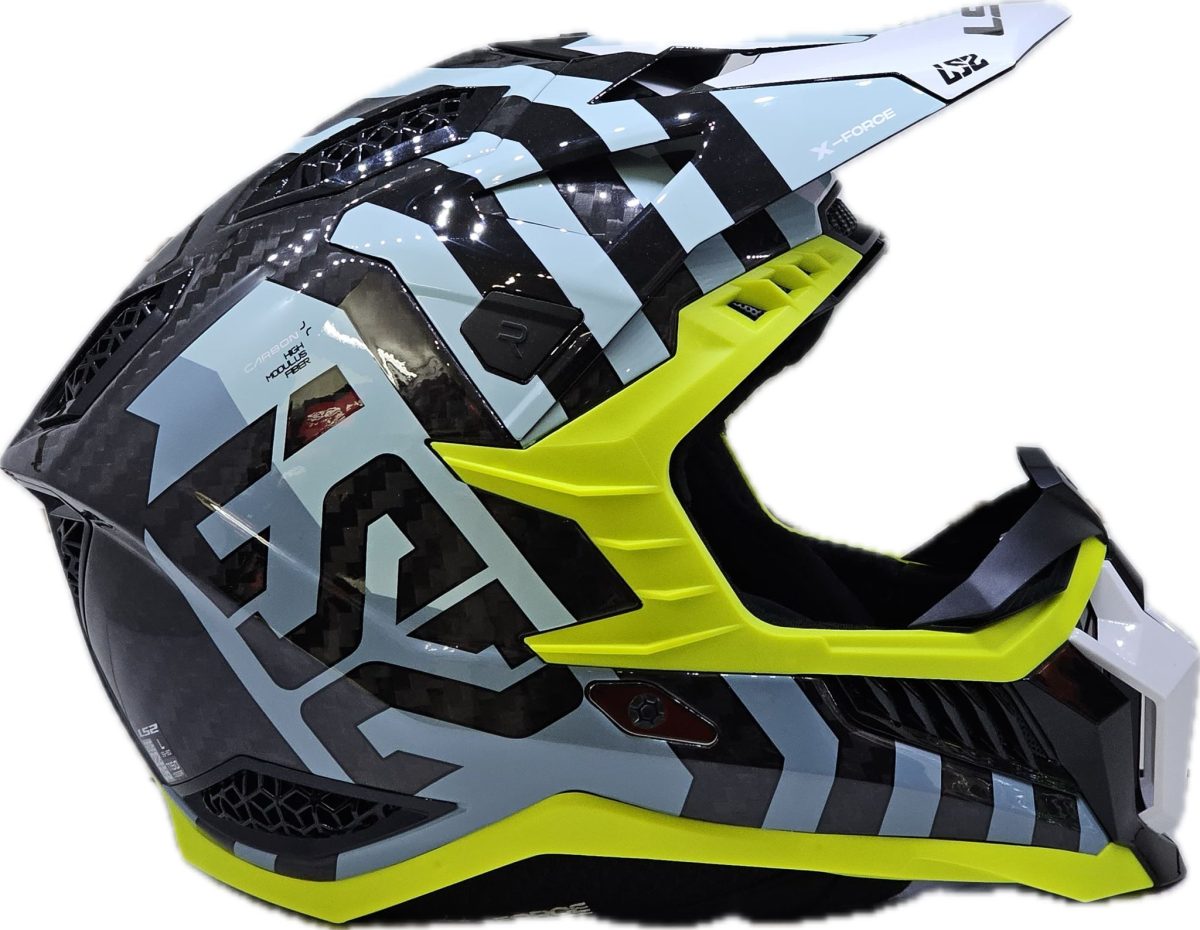 El X-Force Barrier Sky Blue MX703 de LS2 es un casco de cross country de gama alta con carbono, deco azul y amarillo. Cuenta con la nueva homologación ECE 22.06.