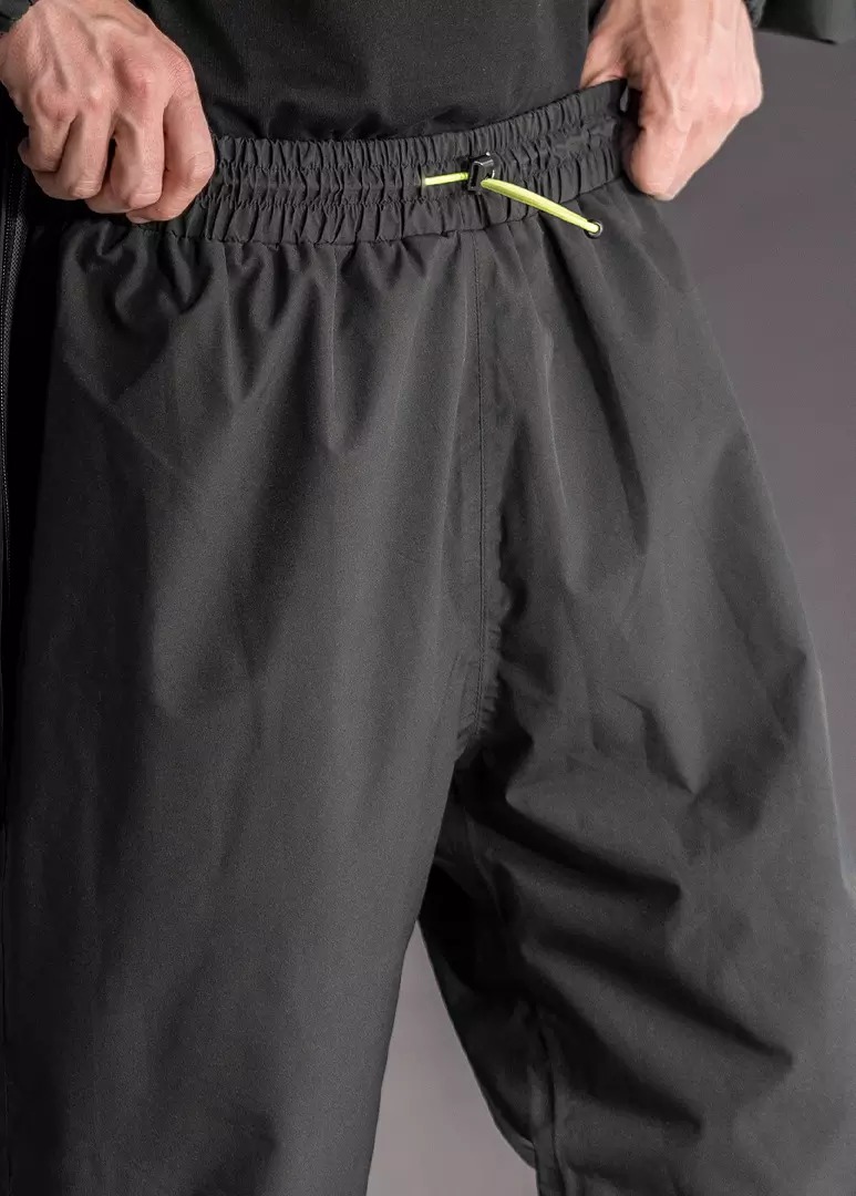 Impermeable y transpirable Exterior de poliéster con costura. proceso sellado para máxima protección contra la lluviaCintura elástica para ajuste perfectoAberturas en las piernas para poner/quitar quitarse las botas fácilmenteParte inferior de la pierna ajustable y elástica